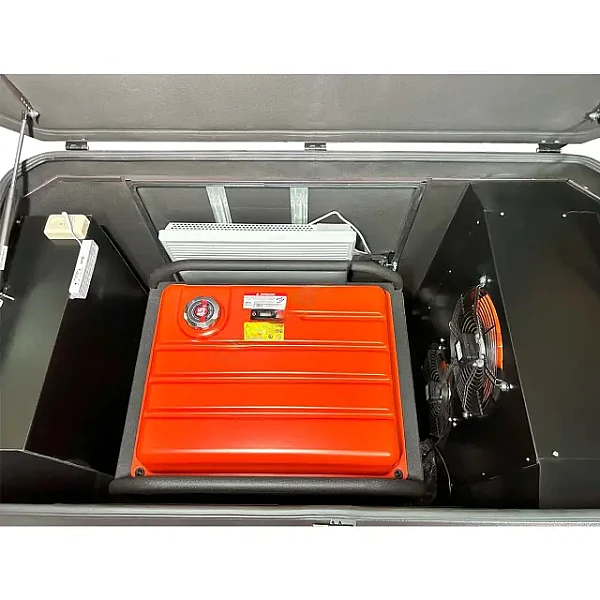 Установка размещена в прочной, усиленной раме, окрашенной по порошковой технологии. Двигатель смонтирован на резиновых подушках, которые гасят вибрации. Такие же подушки смонтирована на концах упоров, на которых агрегат стоит при работе. Транспортировочные колеса и откидная рукоятка упрощают перемещение по объекту, а также погрузочно-разгрузочные мероприятия.