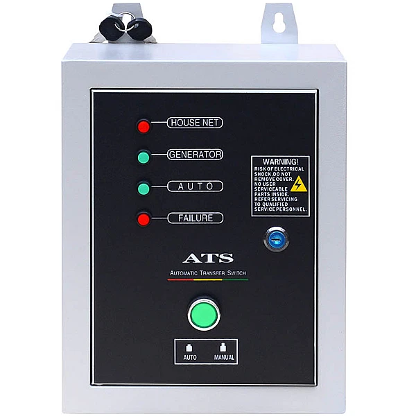 На передней панели блока расположены контрольные лампы, которые оповещают пользователя о текущем состоянии электросети, режиме работы генератора и неисправностях. Кроме того, отдельный индикатор позволяет быстро определить, как режим АВР активен - ручной или автоматический.