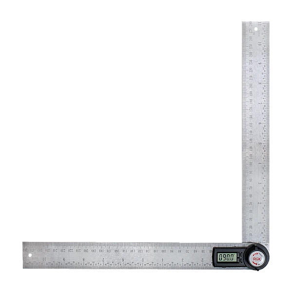 Компактные размеры и возможность измерения углов до 360° позволяют использовать угломер при монтаже полок, окон и других бытовых работах. К тому же, угломер удобно хранить и транспортировать в ходе работ. Основные части прибора изготовлены из нержавеющей стали, благодаря чему обеспечивается долгий срок работы цифрового угломера RGK A-30. Угломер вы можете использовать и в качестве стандартной линейки, за счет конструкции из 2 раздвижных плоских частей со шкалами в см и дюймах. С помощью специальной регулирующей ручки вы можете зафиксировать измерения под любым углом, что позволяет использовать прибор качестве угольника, а также переносить результаты измерения в чертежи.