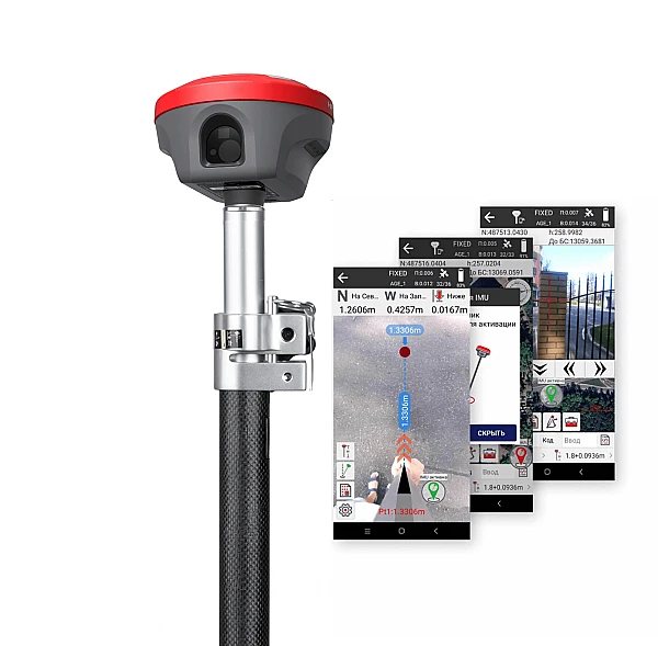 Нижняя AR-камера приемника позволит быстро и с комфортом выполнять разбивочные работы легко с функцией дополненной реальности. Вы не только будете видеть изображение с камеры и навигацию на цель на экране контроллера, но и саму проектную точку по мере приближения к ней острия вехи.