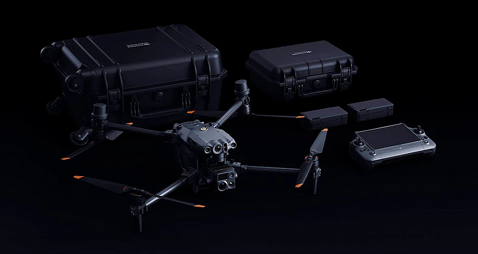 Дроны серии DJI Matrice 30 (M30 и M30T) поставляются с пультом DJI RC Plus, двумя интеллектуальными силовыми батареями TB30, зарядной станцией BS30 и кейсом для хранения и транспортировки квадрокоптера и оборудования.