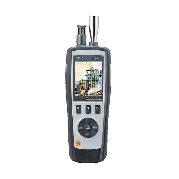 Прибор экологического контроля DT-9881 оснащен 2,8-дюймовым, цветным TFT ЖК-экраном и портом MicroSD для хранения фотографий (JPEG) и видеозаписей (3GP) с возможностью последующего просмотра на персональном компьютере. Прибор обеспечивает получение быстрых и точных показаний содержания взвешенных твердых частиц, измеряет температуру воздуха и относительную влажность.