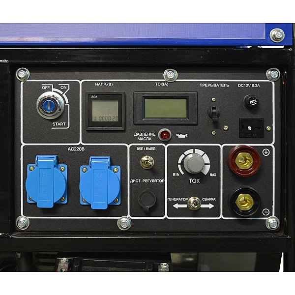 • В данной модели установлен тип генератора, где основная функция - выработка постоянного сварочного тока, силой до 230А. с плавной регулировкой и устойчивым горением дуги. Питание электропотребителей мощностью до 3 кВт - дополнительная функция.