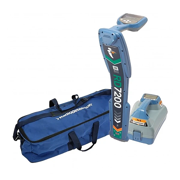 Трассоискатель RD7200 с генератором Tx-5 и сумкой. RD7200 - новый универсальный трассоискатель для поиска и маркировки подземных коммуникаций. Трассоискатель с большим диапазоном частот, компасом, упрощён поиск и увеличена точность обнаружения кабельных линий и трубопроводов. RD7200 получил набор новых функций для повышения эффективности обнаружения коммуникаций в тяжелых условиях. 7 активных частот и 4 частоты зонда, 3 пассивных режима, фильтры гармоник и другие расширенные функции обеспечивают эффективную точность для обнаружения и отслеживания подземных коммуникаций. Обнаружение непроводящих труб или кабельных каналов и кабелепроводов на глубине до 15 м. А новая технология цифровой обработки сигналов позволяет геодезистам обнаруживать и реагировать на слабые сигналы от труднообнаруживаемых или глубокозаложенных коммуникаций.