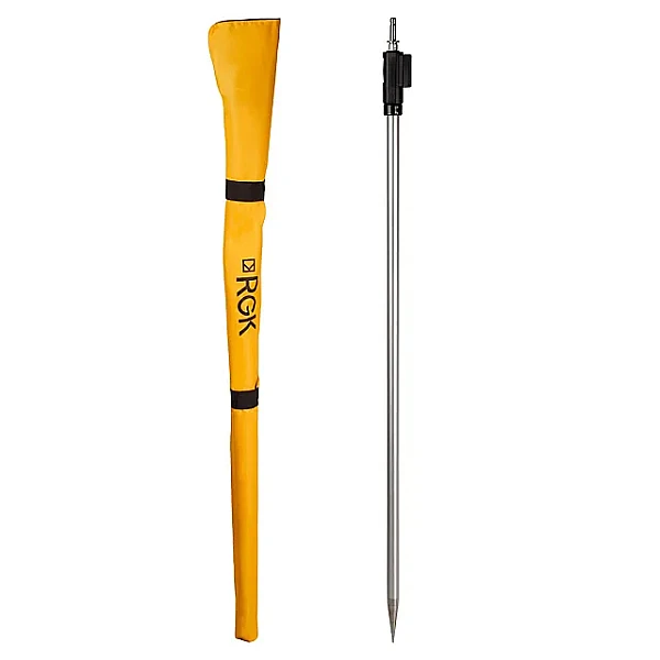 Устройство выполнено из алюминиевого сплава и представляет собой трубчатую двухсекционную раздвижную конструкцию с внешним диаметром 25 мм. Длина вехи RGK CLS11 в сложенном положении составляет 1,24 м, а в разложенном при максимальном вылете – 2,15 м. Наружная секция в верхней части снабжена рукояткой для удобства удержания. Закрепленный снизу изделия заостренный наконечник упрочнен методом термической обработки для повышения износостойкости.